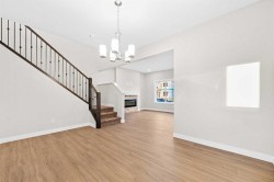 Move-In Ready | 2024 Build | East/West Facing | 1,580 SqFt | 3-Bedrooms | 2.5-Bathrooms | Incredible Living Space | Quartz Countertops | Stainless Steel Appliances | Beautiful Finishes | Open to Below Ceilings | Pot Lighting | Open Floor Plan | Electric Fireplace | Large Windows | Upper Level Laundry | Side Entry to Basement | Alley Access. Welcome to your stunning 2-storey home in Bayside with 3 bedrooms, 2.5 bathrooms and an expansive living space. The main and upper levels boast 1580 SqFt with an additional 701 SqFt in the unfinished basement. Open the front door to a foyer with views into the open concept main level. The front living room is framed with large windows beaming with morning sunlight through the East facing windows. The living room is paired with an electric fireplace adding both style and comfort to this space. The open floor plan compliments a smooth transition from living to dining. The kitchen is outfitted with ample cabinet storage, a bold and stylish black herringbone accent backsplash, quartz countertops, stainless steel appliances and a centre island with barstool seating. The kitchen is also includes a gas line to the stove! The kitchen has a pantry for dry goods storage too! Off the kitchen is a rear coat closet and back door that leads to the backyard and rear parking pad. The main level is complete with a 2pc bath. Upstairs holds 3 bedrooms and laundry. The primary bedroom is grand with a walk-in closet and a private 4pc ensuite bath with a walk-in shower and a double vanity. Bedrooms 2 & 3 are both a great size with closet storage and share the main 4pc bathroom with a tub/shower combo. The laundry is located on this upper level in a deep closet to not take away from any of your living space. Downstairs, the basement has a separate side entry and has rough-in plumbing! This space can be easily transformed to fit your family's needs. Outside is a great sized backyard with space for a deck and a rear detached double garage! Hurry and book your showing at this incredible family home today!