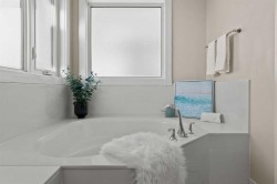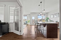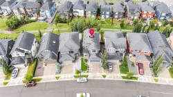 Impeccably maintained and move-in ready, this bright and spacious home offers over 3,200 sq ft of finished living space with a fully developed walkout basement and a west-facing backyard that enjoys a pleasant green view and easy access to nearby parks and pathways. From the moment you enter, you’ll love the inviting foyer, grand two-storey entrance, and upgraded open railings. The main floor is designed for everyday living and entertaining with a private den, open-concept living room with gas fireplace, and a spacious dining area. The chef-inspired kitchen is a standout with granite countertops, a gas cooktop with wall oven, pot and pan drawers, and a walk-through pantry to the oversized mudroom. Upstairs features a large bonus room, convenient upper laundry, and three spacious bedrooms including a primary retreat with vaulted ceilings, walk-in closet, and spa-style ensuite with dual vanities, soaker tub, oversized shower, and private water closet. The walkout basement includes a kitchenette, fourth bedroom, full bathroom, and great storage—ideal for guests, teens, or flexible family living.Outside, unwind in the hot tub and enjoy the mature landscaping. Central A/C and a prime location close to excellent schools (including a K–12 Francophone option), shopping, parks, and pathways complete this exceptional home.