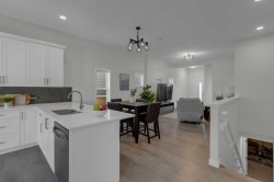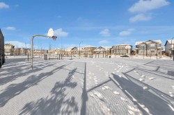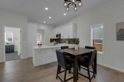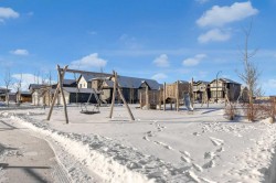 Modern BUNGALOW living with soaring 10’ ceilings, a heated DOUBLE DETACHED 19'x21' GARAGE, and an unbeatable location across from a children's park in Coopers Crossing! Built in 2022 and offering 1,119 sq ft of thoughtfully designed space, this 2 Bedroom, 2 Full Bathroom home delivers stylish single level living with an open concept layout and clean contemporary finishes throughout. Step inside and immediately appreciate the airy feel created by the tall ceilings and expansive main living area finished in durable VINYL PLANK flooring. The bright white Kitchen is both timeless and functional, featuring quartz countertops, crisp white cabinetry, stainless steel appliances, and a long peninsula that offers generous prep space and a comfortable eating area, perfect for casual meals or entertaining guests. The Kitchen flows seamlessly into the Dining and Living areas, creating an inviting space ideal for everyday living. The spacious Primary Suite is designed as a comfortable retreat, complete with a large WALK IN CLOSET and a beautifully finished tiled Ensuite featuring a glass shower for a clean, modern look. A second Bedroom and full Bathroom provide flexibility for guests, a home office, or small family living. The unfinished Basement offers excellent future potential, ready for your vision with room to expand your living space exactly how you need it with 3 large windows and rough in plumbing for a bathroom. Outside, you’ll appreciate the fenced yard, heated and insulated DOUBLE DETACHED GARAGE, offering year round comfort and valuable storage. Conveniently close to 40th Avenue for quick access into Calgary, this home combines convenience, modern design, and low maintenance living in one of Airdrie’s most desirable communities. Welcome home!