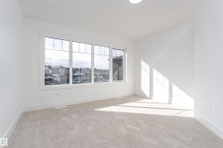 DISTINCT & UNIQUE- PERFECT PACKAGE- PLACE CHALEUREUSE- BRAND NEW 2 Storey + Basement, TRIPLE GARAGE-HUGE PIE LOT-2664 sq ft, 4 BDRM + BONUS room home. Lots of Windows for all the light. Main floor has open concept Great Room, modern upgraded KITCHEN with SPICE KITCHEN & walk in pantry, Spacious Laundry, Bedroom/Den and 4PC BATH ON MAIN. 4 bedrooms, 3 baths, and spacious Bonus Room upstairs. Master has luxury 5 pc en-suite with his and hers sinks Shower huge Walk in Closet. Lots of upgrades including TRIPLE PANE WINDOWS,TANKLESS HOT WATER, DUAL STAGE FURNACE, modern kitchen with QUARTZ counters thru out the house. Huge Pie Lot with big back yard and Covered Deck for entertaining. Linear Fireplace, extensive wood work with built in organizers. Close to all amenities, walk to schools, shopping, easy access to all major routes, South Edmonton, Airport, Leduc. New Home 2-5-10 year Warranty Basement has SIDE ENTRANCE, utilities/rough-ins tucked away