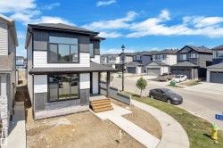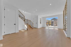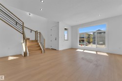 Stunning corner lot detached home in Beaumont! This bright, open-concept layout features luxury vinyl plank flooring throughout the main floor, a cozy electric fireplace with feature wall in the living area, and a spacious kitchen with backsplash and designated space for built-in appliances. The dining and living areas are seamlessly connected, perfect for entertaining. A main floor bedroom with large window, full closet, and a full bath offers flexibility for guests or family. Upstairs boasts a bonus room, a primary bedroom with feature wall and ensuite, two more bedrooms, a shared full bath, and convenient second-floor laundry. Large windows throughout flood the home with natural light. Includes double car garage. Located in a family-friendly community, this home offers comfort, space, and style!