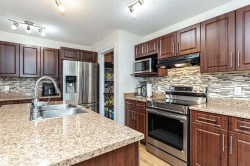 Perfect place to call Home! Greet your family and friends in an inviting foyer. Hardwood floors lead to an open-concept main floor design. Bright and spacious living room anchored by a modern gas fireplace. Huge chef's kitchen is loaded with cabinets, stainless steel appliances, mosaic backsplash and walkthrough pantry/laundry to garage. Cozy dining nook has a built-in sitting/storage bench, large window overlooking the backyard and direct access to two-tier deck. Upper-level has a Relax bonus room, perfect for movie nights, two kids' bedrooms and Master suite with walk-in closet and elegant soaker tub ensuite. Basement is 90% developed just needs some finishing touches. Family room has a second gas fireplace, 4th bedroom and 3pce bathroom with corner shower. Open backyard gets plenty of sun to enjoy the summer activities, gardening, kids' playhouse or entertaining friends. Double attached garage is insulated and heated. Great location close to elementary school, parks, playgrounds and shopping.