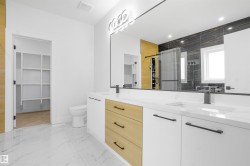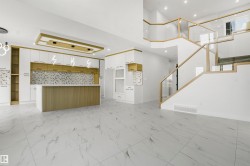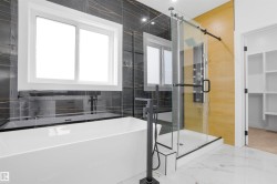 BACKING to WALKING TRAIL! this custom home in the prestigious Lakeview North (Azur), Beaumont! Boasting over 2850 sq.ft. of luxury living, this masterpiece features a triple-car garage and sits on a huge regular lot. Step into the grand foyer with open-to-below ceiling and a spacious living area that makes a bold first impression. The gourmet kitchen is complemented by a full spice kitchen, perfect for culinary enthusiasts. The main floor includes a bedroom with full bath and another open-to-below in living area. Separate side entrance to the basement adds future potential. Upstairs offers 3 bedrooms total out of which 2 are master suites, a third bedroom, a bonus room, an additional full bathroom, and a laundry room for convenience. With premium finishes, a thoughtfully designed layout, and unbeatable location, this home is truly one of a kind. A must-see for those seeking space, luxury, and functionality! Please note: Photos shown are of a similar homes sold before; finishes and layout may vary.