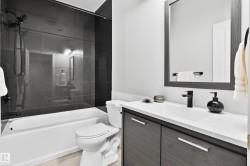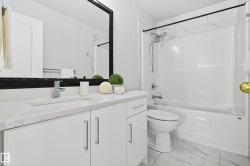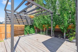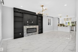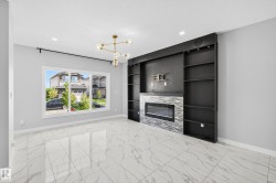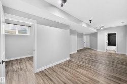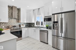 Welcome to this impressive 1,658 sq ft two-story home in Forest Heights! Step inside to a bright, open layout highlighted by 12x24 porcelain tile flooring throughout the main level. The striking electric fireplace with a tile surround and built-in wall unit creates a cozy focal point for relaxing evenings. The kitchen is a chef’s dream, featuring stainless steel appliances, quartz countertops, a stylish glass backsplash, and glossy white cabinetry offering plenty of storage. Outside, enjoy a spacious backyard with a two-tiered deck, privacy fence, and a double detached garage. Upstairs, you’ll find three bedrooms with laminate flooring and a four-piece main bath. The primary suite is a true retreat, complete with a beautiful ensuite and walk-in closet. The fully finished basement, with a side entrance, three large windows, a generous rec room, bedroom, and four-piece bathroom, is perfect for entertaining or guests. This home shows like new—don’t miss your chance to see it!
