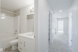 Award-winning Crystal Creek Homes presents this stunning two-storey 3 bed, 3 bath detached home in the highly desirable community of Elan in Beaumont. This home offers a perfect blend of modern style and everyday comfort. The open-concept main floor features a full bath and a versatile den. The contemporary kitchen includes a pantry & spacious island that overlooks the bright and airy living room, complete with a cozy fireplace for relaxing evenings. Upstairs, you'll find a generous bonus room, a convenient walk-in laundry area, a 4-piece bathroom, and 3 spacious bedrooms. The primary suite includes a walk-in closet and a luxurious ensuite with double sinks & shower. This home also comes with a $5,000 appliance credit, a separate side entrance to the basement, and a double attached garage! Don't miss your opportunity to make it yours. UNDER CONSTRUCTION! Photos shown are of the same model and are for illustrative purposes only. See 2nd photo for interior colors.