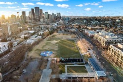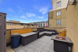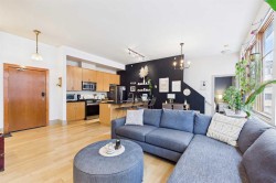 Welcome to “THE PIAZZA“Experience elevated inner-city living in the heart of Bridgeland — one of Calgary’s most exclusive and sought-after communities. This stunning 2-bedroom condo blends modern design with refined comfort, featuring soaring high ceilings and a dramatic wall of windows that floods the space with natural light while showcasing vibrant urban views. The open-concept layout creates a seamless flow between living, dining, and kitchen spaces — perfect for both stylish entertaining and everyday living. At the heart of the living area, a sleek fireplace adds warmth and architectural interest, creating an inviting focal point year-round. The contemporary kitchen offers clean lines, quartz counters, premium finishes, and thoughtful storage designed for effortless functionality. Convenience matters! In-suite laundry, an additional 3 piece bathroom, 2 generously sized bedrooms, with the primary retreat offering a peaceful escape including your own personal ensuite, huge walk in closet, and a secret little door for additional storage. Every detail reflects modern sophistication and intentional design. And the SHOW STOPPER !!! Your own private upper rooftop patio — a rare and exclusive feature. Whether you’re hosting summer gatherings, enjoying morning coffee, or unwinding under the evening skyline, this personal outdoor oasis takes condo living to another level. Steps from Bridgeland’s trendy cafes, restaurants, parks, and river pathways — and just minutes to downtown — this residence offers luxury, lifestyle, AIR CONDITIONING, UNDERGROUND SECURE PARKING STALL and location in one exceptional package. Connection is key and this ~ Sleek ~ Stylish ~ Sophisticated ~ design lends to this throughout. Private & Elevated. Welcome to Bridgeland living at its finest!