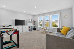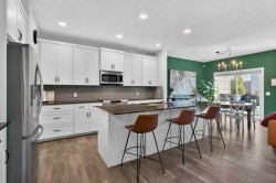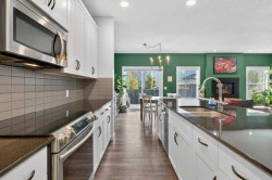 We are thrilled to present a truly exceptional property in New Brighton, one of Calgary's most sought-after neighborhoods. This five-bedroom, Cardel-built home offers over 3,000 square feet of developed space and is designed to impress. From the moment you step inside, you'll be greeted by open and airy nine-foot ceilings and luxurious upgrades throughout. Updated vinyl plank flooring guides you past the tandem triple garage and mudroom into the spacious main living area. A stylish barn door provides privacy for the main floor office, perfect for those who work from home. The modern kitchen is a chef's delight, featuring an extended island, a walk-in pantry, and updated appliances. Adjacent to the kitchen is a generous dining area that opens onto a large composite deck, ideal for outdoor entertaining. The expansive family room, complete with a custom fireplace, ensures cozy gatherings during cooler seasons. The living space extends outdoors with a sunny, east-facing yard, newly decked to enhance your summer evenings. Exterior upgrades include a fenced dog run, a firepit gas line, and Gemstone lighting. Upstairs, a huge bonus room provides the perfect space for sports enthusiasts or movie buffs. The upper level also features convenient laundry facilities, three bedrooms, and two full bathrooms. The enormous primary suite boasts a walk-in closet and a separate shower and tub, bathed in natural light. For your comfort, the entire home is fully air-conditioned. The fully developed basement offers an additional two bedrooms and a generously sized bathroom, perfect for teenagers, guests, in-laws, or multi-generational families. There's also a closed-off craft room, currently used as an artist's studio, ready for your own vision. SOLAR PANELS are a huge bonus and are sold contract free. This is truly one of the most desirable homes in the area, complete with a rare triple tandem garage. New Brighton offers an abundance of amenities, including walking paths, skate park, shopping centers, restaurants, schools, and water parks.Don't miss the opportunity to make this incredible home yours.