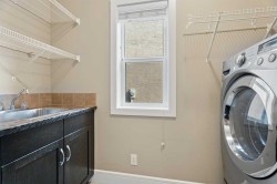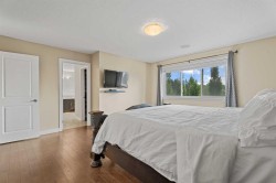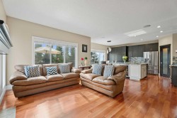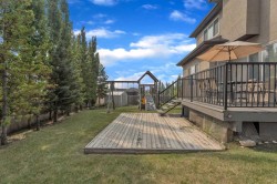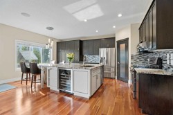 Welcome home to Aspen Woods in your new 5-bedroom + office house with over 2700 sq ft of above-grade space plus a finished basement. This executive air-conditioned home is on a large pie-shaped lot with no neighbours behind and on a quiet cul-de-sac on a no-through road with a playground around the corner. The main floor of the home has an inviting foyer with freshly painted double doors (this makes moving large items a breeze) and two closets, including a rare walk-in closet at the entry. Notably, this home is entirely carpet-free: cherry hardwood on the main floor, oak hardwood upstairs, and durable vinyl plank in the basement. There is a formal dining room and a private office on the main floor plus a spacious kitchen/dining/living room. The oversized garage has tall ceilings and could fit a small lift. The laundry is located off the entry to the garage with more closet space. The chef’s kitchen has an enormous island with a matching kitchen table that can be used as an extension of the island. There is a gas range, multiple pantries, a trash compactor, a wine fridge, display areas, and more! You can also catch glimpses of the mountains while sitting at the kitchen table. The living room has built-in wall shelves, a gas fireplace, and big windows to the east. The backyard is designed for both relaxation and play, with a two-tier deck, large shed, play structure, mature landscaping, and two productive apple trees—all on a nearly 7,000 sq. ft. lot. Upstairs is extremely spacious with a large bonus room with vaulted ceilings and built-in shelving, a grand primary bedroom, and three secondary bedrooms. The primary bedroom gets warm morning light and has a 5-piece ensuite and a walk-in closet with custom organizers. The remaining 3 bedrooms upstairs share a bathroom with dual sinks and a separate area for the bathtub & toilet. The westerly bedrooms have great views of the Rockies and Foothills to wake up to. The upper two floors also have built-in ceiling speakers. The fully finished basement includes a fifth bedroom with a built-in sink (ideal for a home-based business requiring a sink), a spa-inspired bathroom with multi-head shower, a wet bar, large bright windows, and ample storage, including a finished space under the stairs. Aspen Woods is a premier neighbourhood of Calgary with lots of local shops, quick access to the mountains, and a choice selection of schools, including Webber Academy, Rundle College, Guardian Angel Catholic, and Dr. Roberta Bondar Elementary. This stately Aspen Woods property blends elegance, functionality, and family-friendly features—ready to welcome you home.