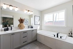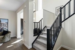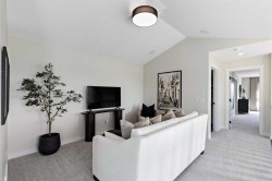 Located in East Calgary, the vibrant community of Huxley offers the perfect blend of amenity-rich city living and small-town comfort. Surrounded by natural grasslands, preserved greenspaces, and a scenic wetland park, Huxley provides a peaceful setting just minutes from East Hills Shopping Centre and major routes. The Oakridge model by Trico Homes showcases superior craftsmanship and thoughtful design. This spacious 2,158 sq. ft. home features 9' ceilings, an open-to-below foyer, engineered hardwood flooring, quartz countertops, and high-efficiency appliances. The main floor includes a large kitchen with abundant cabinet and counter space, soft-close drawers, a walk-in pantry, and a convenient flex room. Additional highlights include a side entrance for possible future basement development, with an option for a main-floor bedroom, full bath, and spice kitchen. Photos are representative.