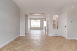 Welcome to the Hudson by Rohit Homes, a newly built 3 bedroom, 2.5 bathroom detached home in Heartwood SE Calgary, one of the city’s emerging southeast communities. Designed for modern families and savvy buyers, this home features a separate side entrance for future basement development, upper level laundry, and quartz countertops throughout. The main floor offers a bright, open concept layout that connects the kitchen, dining, and living areas seamlessly. Finished in Rohit’s Neoclassical Revival palette, the interior blends timeless design with contemporary function. The kitchen showcases rich toned cabinetry, quartz surfaces, upgraded hardware, designer lighting, and a spacious peninsula island ideal for everyday living and entertaining. Stainless steel appliances and clear sightlines across the main level create a practical and welcoming space, while large windows bring in natural light. A convenient two piece bathroom completes the main floor. Upstairs, the primary bedroom serves as a comfortable retreat with a walk in closet and an upgraded ensuite featuring dual vanities and a fully tiled walk in shower. Two additional bedrooms, a full bathroom, and upper floor laundry provide the layout today’s buyers are searching for in a new construction home in Calgary SE. The separate side entrance enhances long term flexibility, offering strong potential for future basement development or additional living space. Whether you are a first time home buyer, move up buyer, or investor exploring new homes in southeast Calgary, this layout delivers both function and future value. Located in Heartwood SE Calgary, residents benefit from convenient access to South Health Campus, Seton YMCA, shopping, restaurants, major roadways, and planned schools and parks. Backed by Alberta New Home Warranty, this brand new Rohit Homes property offers peace of mind along with modern design and strong resale appeal. Visit the Rohit Homes showhome at 84 Heartwood Lane SE to explore the Hudson floorplan and discover available quick possession homes and pre construction opportunities in Heartwood.
