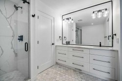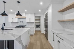 Welcome to an exclusive bungalow nestled in the prestigious community of Lake Bonavista. Boasting over 3400 SQ FT of living space and a front AND back double garage, this luxurious residence is within walking distance to the lake, local schools, shopping and Fish Creek Park nearby. As you enter, soaring vaulted ceilings greet you and run through the living room with gorgeous fireplace to the contemporary loft space. The custom kitchen boasts real wood cabinetry, dovetail drawers, premium quartz counters, a massive island and is flanked by a flex space and a butler pantry. A glass-enclosed wine feature and dinette cabinetry sit just off the dining room which opens out to a bbq area and backyard. The main bathroom exudes elegance, with a custom dual vanity, in-floor heated marble tile, and sits perfectly beside two bedrooms that boast a unique loft space that could be developed to multiple future uses. The primary suite offers a spacious layout, a large walk-in closet, and a luxurious ensuite with a freestanding soaker tub, marble tile, custom double vanity, and a dual shower framed by an exotic backlit illuminated quartz. The basement is an entertainer’s dream with a living room, wet bar, bathroom with walk-in shower, flex room, and two additional bedrooms. The front and backyards await your touch and are ready to take advantage of the supplied personalized landscaping package. Meticulously renovated down to the studs, this home features upgraded insulation, new electrical and plumbing, smart switches, engineered hardwood, and all new doors, trim, and paint. No expense has been spared in creating this luxurious masterpiece, don't miss your chance to make it yours!