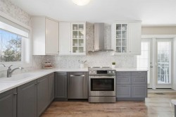 ***OPEN HOUSE***SATURDAY, FEBRUARY 28TH - 12-2 PM***Welcome to this fully renovated 3 bedroom (2 up/1 down), 2 bathroom, 4-level split home, perfectly located diagonally across the street from a beautiful little park (with children's playground) in a mature, quiet neighborhood within walking distance to LRT, transit, schools, parks, playgrounds, and shopping. An unbeatable location offering exceptional value and convenience! This beautiful property has been extensively renovated using high-quality materials, including new windows (2016), high efficiency furnace (2015), hot water tank (2015), and roof (house and garage), shingles (2023). The thoughtfully redesigned main level features a bright, spacious dining room open to the kitchen, creating a modern and inviting open-concept feel. The stunning chef-inspired kitchen offers QUARTZ countertops, MARBLE backsplash, premium BOSCH stainless steel appliances, and a built-in water filtration system. The kitchen also has patio doors leading to a spacious deck — perfect for entertaining and everyday family living. The home offers two generous bedrooms and a full bathroom on the upper level; a living room with a gas fireplace, the 3rd bedroom and a 3PC bathroom on the lower level and the basement offers a HUGE REC ROOM with electric fireplace, storage room and laundry area, providing versatile spaces for relaxation, work, or play. Step outside to enjoy the sunny west-facing backyard, professionally landscaped with a beautiful outdoor living space, a large deck, double detached oversized garage, and fenced RV PARKING (with a gate), backing onto a paved lane. The DOUBLE, OVERSIZED, DETACHED GARAGE IS A MECHANICS DREAM WITH A HIGH DOOR & HIGH CEILING! This property truly is a hidden gem, combining style, functionality, location, and outstanding value — a rare opportunity in today’s market. Book your private showing today!