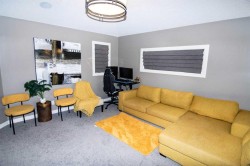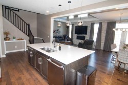 Welcome to this exceptional former show home in Redstone, perfectly positioned on a rare pie-shaped lot backing onto a walking path, open greenspace, and cricket pitch—offering privacy, space, and unbeatable outdoor views. Ideally located minutes from the upcoming Costco Plaza and Gurdwara Sahib, this home combines luxury living with future growth potential.Boasting over 3,100+ sq. ft. of developed living space, this thoughtfully designed home features open-to-below ceilings, an open-concept floor plan, and an abundance of natural light through large vinyl windows.The main floor is finished with elegant hardwood flooring and showcases a stunning living area highlighted by a floor-to-ceiling stone accent wall with an electric fireplace. The chef’s kitchen is a true showstopper, complete with ceiling-height cabinetry, granite countertops, gas cooktop, built-in stainless steel appliances, chimney hood fan, and a large centre island with seating for three. A walk-through pantry seamlessly connects the kitchen to the upgraded mudroom, featuring built-in shelving, hooks, and seating for everyday convenience. The dining area opens directly to an oversized deck, making indoor-outdoor entertaining effortless.Upstairs, you’ll find a bright bonus/family room overlooking the backyard and greenspace—perfect for relaxing evenings. The primary retreat, tucked away at the rear of the home for added privacy, offers a walk-in closet and a luxurious 5-piece ensuite with a deep soaker tub, glass shower, double vanity, and private water closet. Two additional spacious bedrooms, a full bathroom, and a convenient upper-level laundry room complete this level.Outside, enjoy a large backyard, oversized deck, and serene views with no direct rear neighbors. A front-attached double garage and extended driveway allow parking for up to four vehicles, with additional street parking available.This home offers style, space, functionality, and strong future value in one of NE Calgary’s most desirable and fast-growing communities.Book your private showing today—this Redstone gem won’t last!