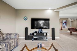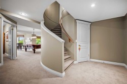 Welcome to 136 Patrick View SW—an executive walkout residence offering over 4,400 sq ft of refined living space, perched abovea protected nature reserve in one of Patterson’s most prestigious enclaves. With 3,119 sq ft across the main and upper levels, plus an additional1,300+ sq ft in the fully developed walkout basement, this home delivers luxury, functionality, and lasting value. From the moment you enter, a grandstaircase and sunlit foyer set the tone for timeless sophistication. The main floor flows seamlessly through formal and casual living spaces, with newlyrefinished hardwood, luxury vinyl plank, and designer lighting. The professionally renovated kitchen features granite counters, a gas cooktop, and abuilt-in appliance wall with microwave above and oven below—anchored by a crystal-lit island and breakfast nook that opens to a topless glass raildeck framing panoramic river valley views. Upstairs, the primary suite is a sanctuary with heated marble floors, a freestanding soaker tub beneath achandelier, and a walk-in closet with custom cabinetry and brass accents. The ensuite also includes a frameless glass shower with rainfall andhandheld heads, and dual vanities with elegant lighting. Three additional bedrooms and a 5-piece bath offer comfort and flexibility for family orguests. A dedicated home office, a serene wellness room, and an elegant upper hallway with tray ceiling and chandelier add both function and flair.The walkout level is designed for leisure and entertaining, featuring a spacious rec room with fireplace, red-felt pool table, built-in bar with glasscabinetry and mini fridge, media lounge, and a cozy dining nook with bay windows. Additional guest bedrooms and a full bath complete the lowerlevel, while large windows flood the space with natural light. Outside, enjoy a professionally landscaped yard with mature trees, a recessed fire pitarea with stone surfacing, a private dog run, and a covered patio beneath the elevated deck. The property backs onto a nature reserve, offeringunobstructed views and exceptional privacy. Aerial perspective reveals the home’s prime location—just minutes from top schools, boutique shopping,and downtown Calgary, yet surrounded by greenery and tranquility. Over $35,000 in recent upgrades—including new A/C, hot water tank (2025),washer/dryer, range hood, window treatments, garage painting, and refreshed landscaping—complement earlier renovations to the kitchen, ensuite,and deck. Every detail reflects pride of ownership and professional care. This is elevated living—crafted for those who expect more.
