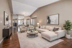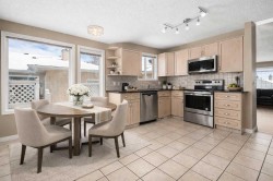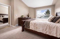 Tucked away on a quiet cul-de-sac in one of Signal Hill’s most desirable pockets, this bright semi-detached bungalow villa delivers over 2,500 sq. ft. of beautifully developed living space designed for effortless, low-maintenance living—without giving up room to entertain, unwind, or host overnight guests.The best part? The big-ticket work is already done. In 2026, the home underwent a TOTAL water system replacement completed with full City permits and final approval, including the complete removal of Poly-B piping. You’ll also enjoy a transferable 25-year material warranty and 2-year workmanship warranty (starting Feb 18, 2026). Additional 2026 upgrades include all-new piping, DCVA backflow protection, 1/4-turn shutoff valves, a new fridge water line, brass frost-free outdoor faucets, plus designer lighting, outlets, switches, and door locks throughout—giving you modern style and real peace of mind.Step inside and you’ll immediately feel the space: soaring vaulted ceilings and large south-facing windows flood the living room and formal dining area with natural light. The kitchen is perfectly set up for daily ease and weekend hosting, featuring stainless steel appliances, a cozy breakfast nook, and a chef-style faucet (2026). From here, step outside to your sunny, private outdoor retreat with a cement patio and vinyl deck (2018)—ideal for morning coffee, BBQs, or quiet evenings. A three-way fireplace anchors the main living area, creating warmth and ambience you’ll appreciate all year long.The main level is anchored by a spacious primary suite with vaulted ceilings and a 4-piece ensuite featuring a tub and separate shower, plus main-floor laundry & a convenient powder room to keep life simple.Downstairs, finished basement expands your lifestyle options with a large recreation room and corner fireplace, a second bedroom, full 4-piece bath, den, flex room, & plenty of storage—perfect for guests, a home office, gym, hobbies, or movie nights.You’ll also love the practicality of an oversized attached garage and a large driveway for extra parking. Front and back irrigation is in place, and the $184.24/month HOA fee covers lawn care, snow removal, irrigation, and sprinkler maintenance/replacement—true lock-and-leave convenience.More recent updates include upgraded attic insulation (2021), new roof (2020), hot water tank (2021), microwave hood fan (2025), and new eaves and downspouts (Nov 2025).And the location seals it: minutes to LRT, transit, Westhills Towne Centre, Safeway, Superstore, restaurants, and entertainment—plus excellent nearby schools including Ernest Manning High, Bishop Pinkham, and Battalion Park School, with quick access to Sarcee Tr, Stoney Tr, parks, pathways, and Westside Rec Centre.This is a rare chance to own a spacious, sun-filled bungalow villa in a premier west-side community—upgraded where it counts, and ready for you to move in and enjoy. Some images have been virtually/digitally staged to illustrate possible furnishings and layout.