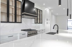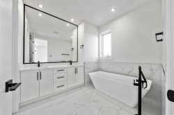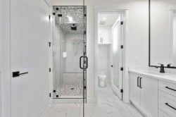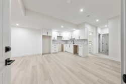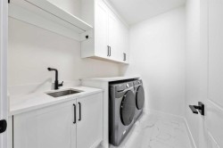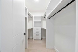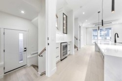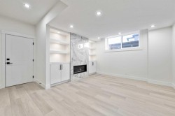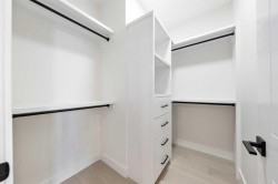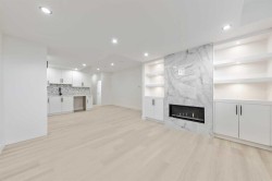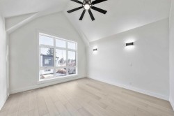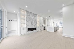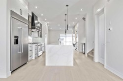 OPEN HOUSE SATURDAY February 14 | 2pm - 4pm !! Welcome to the lap of luxury in Rosscarrock. This beautifully appointed infill is within one kilometre walking distance to Westbrook C-train station, Westbrook mall, E-MART, Walmart, Starbucks, and many pubs/restuarants which makes it an ideal location with its 2 BEDROOM BASEMENT LEGAL SUITE. Have Kids with allergies? NO CARPETS THROUGHOUT. The Main floor has 10’ CEILINGS, wide front entrance, an enormous dining area to fit a harvest table, luxurious kitchen with quartz backsplash, 14' long island with a magnificent quartz countertop and dual waterfall feature and cabinet doors on both sides (plenty of storage space for all your small kitchen appliances), a show-stopping "COMMERCIAL STYLE" 36 INCH GAS RANGE, Impressive 48" FRIDGE and High-end BEVERAGE COOLER in the seamlessly situated coffee bar that is open-to-above. The Living room has an opulent ~70' GAS FIREPLACE with built-ins and sliding patio doors that opens to a maintenance-free, composite plank party deck. The mud room has sitting bench and hangers, and will lead a conveniently located powder room. The highlight of the top floor is the Massive Primary bedroom with its Cathedral ceiling, spacious WALK-IN HIS & HER closets and a spa-like ensuite which will have a tiled STEAM SHOWER, double vanity, and a free-standing tub. The top floor is completed with a laundry room with sink, two bedrooms, one which has "cheater-ensuite" access to the common 4-piece bathroom. Every main and top floor bathroom has electric in-floor heating with their own thermostat, 200 AMP SERVICE TO HOUSE ensures there is enough power for house and a legal basement suite. The BASEMENT HAS A SEPARATE SIDE ENTRANCE, access to the furnace/mechanical room is in the common area so basement tenants do not need to be bothered/notified if you have to access the mechanicals. The basement ceiling has sound reduction features in the ceiling, hookups for a private laundry, kitchen and living room (with a gas fireplace), ITS OWN FURNACE and roughed-in in-floor heating. Did I mention TRIPLE PANE WINDOWS THROUGHOUT which are more energy efficient and improve sound insulation within the house? Other features include GFCI OUTLETS BEHIND EVERY TOILET (required for heated bidets), 200 AMP service in home, HEATED (also insulated, drywalled and painted) GARAGE WITH 200 AMP SERVICE with an EV CHARGING RECEPTACLE suitable to connect a Level 2 charging station. Taxes on completed home not yet assessed.