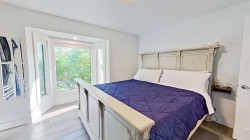 Experience comfortable small-town living just minutes from downtown in this fully renovated bungalow, situated on a spacious pie-shaped lot within a quiet cul-de-sac lined with Elm trees in Mayland Heights. This residence has been meticulously updated, to ensure warmth during winter and coolness in summer. Luxurious amenities include heated floors throughout the main level with individual room controls for consistent temperature, a well-appointed kitchen equipped with high-end appliances, gas fireplace and large new windows providing ample natural light. For summer comfort, the home is fitted with air conditioning.Smart lighting systems allow easy control of all fixtures, while the primary bathroom offers a spa-like atmosphere with a dual shower, jetted tub, heated towel warmer, dual sinks, and generous storage. The upstairs laundry provides access to a heated 19x7 swim spa, complete with a heated step for winter safety. The basement features stretch ceilings for an open feel, spray foam insulation for thermal efficiency, a golf simulator area with 10-foot ceilings, theatre space with atmospheric galaxy lighting, and a gym area with laundry hookups. Additional upgrades include an on-demand hot water tank, new windows, furnace, central vacuum, and extensive storage options. Outdoors, the property includes an island and Viking BBQ with searing station for grill lovers, a heated pergola, heated sidewalks for comfortable outdoor entertainment, irrigation system, RV parking pad with electrical outlet, and a heated double car garage. The substantial lot provides opportunities for future redevelopment.