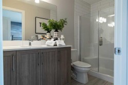 Welcome to the Charlotte by Partners, a paired home designed with functional and stylish living space. The main floor features 9’ ceilings and an open-concept layout with a rear kitchen that includes upgraded MDF cabinetry, quartz countertops, a custom backsplash, central island, and a stainless steel appliance package with an upgraded range. Bright dining and living areas at the front of the home provide plenty of natural light and an inviting space for everyday living. Upstairs, the primary suite offers a walk-in closet and a private ensuite with dual sinks and a walk-in shower. Two additional bedrooms, a full bathroom, and convenient upper-floor laundry complete the second level. This home also includes two basement egress windows, rough-in plumbing, and future development potential. At the rear, you’ll find a gravel parking pad with alley access. Located in Logan Landing, a new community surrounded by natural beauty, residents will enjoy pathways connecting to the Bow River, nearly 140 acres of open space, parks, playgrounds, birdwatching, fishing, and a community stormwater pond with surrounding amenities. Don’t miss the opportunity to make this upgraded Charlotte model your new home!