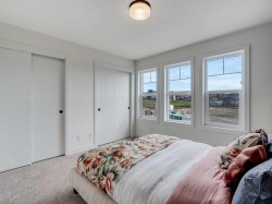 Explore a series of stylish heritage-inspired row houses located close to the center of our scenic Environment Reserve Park! This Heritage model A combines comfort and functionality, making it perfect for families and professionals. With 2 bedrooms, 2.5 bathrooms, and a flexible main-floor den, this expansive home is tailored for contemporary living. Upon entering, you will discover a bright ground-floor den or home office that includes a large window, a closet, and a handy powder room. Enjoy a beautifully landscaped front yard, a single attached garage, and additional parking in the driveway. The open-concept main floor features 9' ceilings and is bathed in natural light, creating a cozy and welcoming atmosphere for daily living or entertaining guests. The modern kitchen is equipped with quartz countertops, a breakfast bar, high-end stainless steel appliances, and a chimney-style range hood. Sliding doors lead to a full-sized balcony — perfect for unwinding or dining outside. On the upper level, there are two roomy bedrooms, including a primary suite that has a double access closet and a private ensuite with a stand-up shower and a sliding glass door. A second full 3-piece bathroom is available for the additional bedroom, which can also serve as a home office. The upper floor further includes a washer and dryer conveniently situated, a linen closet, and ample storage options throughout.This home is located in vibrant Springbank Hill and offers easy access to Aspen Landing, Rundle College, Griffith Woods, Ambrose University, restaurants, and senior care facilities.**The price includes GST.