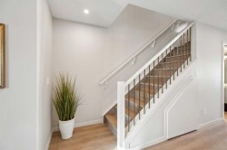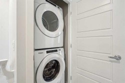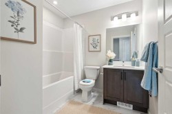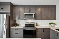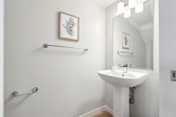 Welcome to Prima at ZEN Livingston, a thoughtfully designed 2-bedroom, 2.5-bath NET ZERO townhome offering 1,086 sq. ft. of modern, energy-efficient living by Avalon Master Builder. Built for comfort and long-term savings, this home features TRIPLE-PANE windows, advanced insulation, and a solar rough-in. The OPEN-CONCEPT main floor showcases luxury VINYL PLANK flooring, pot lights with knock-down ceilings, and a bright living and dining area that seamlessly flows into your FULLY FENCED BACKYARD, ideal for kids, pets, or added privacy. Enjoy a BBQ gas line, plus landscaping and irrigation already included. The modern kitchen is finished with QUARTZ countertops and a 6-piece Whirlpool appliance package, offering both style and functionality. Upstairs, you’ll find two spacious bedrooms, including a primary bedroom with its own ensuite, along with convenient upper-floor laundry. Photos are representative.