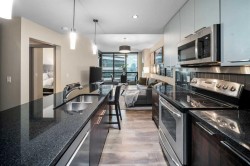 SLEEK 2 BED, 2 BATH, TURNKEY CONDO IN THE HEART OF CALGARY! Imagine living above Sunterra Market with fresh groceries, ready-to-go meals, and your morning coffee just an elevator ride away. This is the Beltline, Calgary’s most vibrant inner-city community where everything happens. Walk to the Saddledome for concerts or Flames games, experience the buzz of Stampede Park, shop and dine along 17th Avenue, or head out to the river pathways for a change of pace. Living the life in the Beltline means your days are connected, your evenings are lively, and your weekends are filled with endless options. At Keynote 1 you are not just buying a condo, you are putting yourself in the center of Calgary’s energy where work, play, and lifestyle all come together. This 15th floor residence offers nearly 900 sqft of chic and functional living with two bedrooms and two full bathrooms. Floor-to-ceiling windows flood the open-concept space and the dining area flows seamlessly onto your spacious balcony finished with interlocking wood tiles that add warmth and style to your private outdoor retreat. Inside, the kitchen is designed to impress with granite countertops, stainless steel appliances, and a custom-style shelving unit that extends your pantry or provides a showcase for glassware, plus a convenient breakfast bar perfect for pre-game cocktails with friends or a post-concert Skip order. Recently updated luxury vinyl plank flooring enhances the modern feel, while in-suite laundry deliver convenience. Unlike most condos, this property comes with not one but two storage lockers, a rare and valuable feature for condo living, along with a titled, secure, heated underground parking stall. BONUS: All the furniture, cookware/glassware, small appliances, cutlery, TV, dining room set can stay. Keynote residents enjoy premium amenities including two fitness facilities, one dedicated to weights and the other to cardio, a stylish owner’s lounge with table games and gathering spaces, and a landscaped courtyard with outdoor BBQs, water feature wall, and room to celebrate with family and friends. Hosting guests is effortless with access to two fully furnished suites available at an affordable nightly rate. Whether you are seeking your own urban retreat or a smart investment in Calgary’s most undeniable location, this home delivers lifestyle, convenience, and exceptional value all in one.