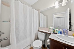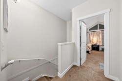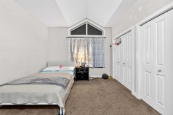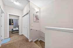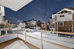 Steps to transit & shopping! Welcome to this well-designed 3-storey townhome in the sought-after community of Skyview Ranch, offering 2 bedrooms, 2.5 baths, and 1,250 sq ft of functional living space. Step inside the main level to find a versatile open area serving as a Den—perfect for a home office or small business—along with a half bath and access to a single attached garage.Walk up one level to the heart of the home, where 9-foot ceilings and an open floorplan create a bright, welcoming atmosphere. The Living room with gas fireplace flows seamlessly to a private balcony, ideal for outdoor relaxation. Adjacent is the Dining room and the South-facing Kitchen featuring a raised eating bar and stainless steel appliances—perfect for casual meals and entertaining.On the upper level, the spacious Primary bedroom with vaulted ceiling offers excellent space with 2 closets for ample storage and a 4-piece ensuite bath. The 2nd bedroom, a 4-piece bath, and in-suite laundry with additional storage space complete this level.Ideally located just steps from the #145 bus stop connecting to the C-Train station, with a 2-minute walk to a mini plaza featuring Esso, restaurants, pharmacy, and liquor store. Close proximity to Deerfoot Trail, Calgary Airport, Stoney Trail, Cross Iron Mills, Country Hills Superstore, T&T Supermarket, Safeway, Canadian Tire, Home Depot, Saddle Towne, schools, parks, medical clinics, gyms, and the community center. This is the perfect blend of convenience and comfortable living in Northeast Calgary!