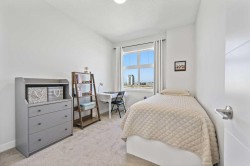 Welcome to this stunning 3-level townhome where modern design meets natural beauty, located steps from Quarry Park and surrounded by over 70,000 sq. ft. of lush community gardens. Offering 3 SPACIOUS BEDROOMS, 2.5 BATHS, and an A DOUBLE ATTACHED HEATED TANDEM GARAGE with rough-in for EV charging, this home blends convenience, style, and sustainability. Step inside and be impressed by the bright, open-concept floor plan with 9-foot ceilings, oversized windows, and a seamless flow from living to dining. The gourmet kitchen showcases quartz countertops, ceiling-height cabinetry, a flush oversized island, sleek stainless steel Whirlpool appliances including a convection oven, and LED under-cabinet lighting for that perfect touch of elegance. The main floor extends outdoors with both a private balcony—ideal for your morning coffee—and a fenced backyard that opens to a walking path. Upstairs, you’ll find three inviting bedrooms, including a serene primary suite with a walk-in closet and a beautifully appointed ensuite featuring an over sized walk-in shower with glass sliding doors and gorgeous extended quartz counter top. The added convenience of an in-suite washer and dryer makes daily living effortless. This home was designed with Jayman’s Core Performance features, including: Solar panels to assist with utilities, coded front door with mobile app and notifications, Smart garage door with mobile app and notifications, Ring camera, Lifebreath HRV giving you fresher, cleaner air and Smart Switches through out that are integrated with Alexa/Google, Luxury Vinyl Plank flooring for durability, triple-pane windows, Ecobee Alexa-enabled thermostat with remote sensor, central air conditioning for your warm Summer months, tankless water heater with circulation pump, Moen fixtures & James Hardie siding. Perfectly maintained by its original owners, the home is accented by a fresh, neutral palette and warm design touches that create an elevated yet cozy atmosphere. Beyond your door, Les Jardins offers unmatched amenities: a full fitness centre, dog park, central gardens, and a truly walkable lifestyle with quick access to Deerfoot and Glenmore Trail. Here, the exterior beauty seamlessly matches the interior charm—low-maintenance, sustainable, and built for the way you live. Nothing Compares. Welcome home to Les Jardins.