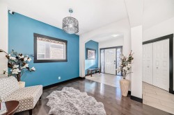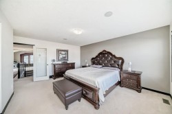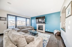 4 Bedrooms | 3.5 Bathrooms | Large Bonus Room | Fully Finished Basement | 9-Ft Ceilings | Built-In Speakers & More!Welcome home to one of the most distinctive and beautifully upgraded homes backing onto walking paths in Skyview Ranch Northeast! Stunning & Captivating! From the moment you enter, you will be captivated by the abundant natural light streaming through the large, continuous windows - offering refreshing views of the open sky & the green grass! Modern pot lighting and a skylight accentuate the 9-foot knockdown ceilings, creating a bright and airy atmosphere throughout.The chef-inspired kitchen is a true centrepiece, featuring tall cabinets, granite countertops, a gas cooktop, a wall oven, and built-in microwave—all set on sleek ceramic tile that flows from the garage entry through the mudroom and walk-in pantry to the dining area. The adjoining living room and flex/office space are finished with elegant hardwood flooring, ideal for both everyday comfort and entertaining.The staircase will take you up to another level! Starting with the spacious primary master suite impresses with GLASS FRENCH DOORS, a SPA-INSPIRED ENSUITE with DOUBLE SINKS, SOAKER TUB, WALK-IN SHOWER! All of this with the view of the green space in the back from the large windows of the Master! Don’t forget the large walk-in closet!Across the hall, the bright bonus room features vaulted ceilings and expansive windows filling the space with natural light. Two additional great sized bedrooms, a full bathroom, and the conveniently located laundry room completes this level. The fully finished basement with a generous bedroom, a full bathroom, electric fireplace in the living room, lit with a window, & pot lights is ready to accommodate your family or a nanny with a huge island for entertainment, surrounded by plenty of cabinetry, a sink, a fridge, and a built-in microwave! They will even have access to their own washer/dryer! There is potential for a separate entrance.Everything from the kitchen backsplash, to the window coverings, to paint, to windows, to the built-in speakers, the composite rear porch, and to the materials used in the house is a form of art and expression of beauty. This kind of a house rarely becomes available and sure to impress. Pictures do not do justice, so come and see for yourself!