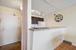 Bright End-Unit with Exceptional Views + Oversized BalconyThis spacious End-unit one-bedroom condo offers unbeatable downtown living with a approx.. 275 sq. ft. balcony showcasing panoramic views of the city, river, and skyline. A stunning round feature window adds architectural character and floods the home with natural light.Just steps from City Hall, this spacious, open-concept suite includes secure covered parking and access to a full suite of amenities: a fitness centre, sauna, racquet court, three elevators, on-site management, free laundry on every floor, garbage chute, and comprehensive recycling/compost program.Perfect for first-time buyers, professionals, or investors seeking a bright, well-designed unit in a prime location. Easy to view!Note: Photos were taken prior to previous tenant's occupancy to maintain privacy.