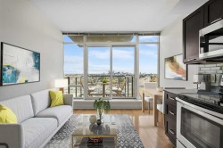 Welcome to University City, where contemporary sophistication meets effortless urban living. This exceptional east-facing residence showcases brand new luxury vinyl plank flooring and a freshly painted interior, offering a modern, move-in-ready space that exudes style and comfort. Capturing sweeping panoramic views of downtown Calgary through impressive floor-to-ceiling windows, this bright and inspiring condo is bathed in natural light throughout the day. Thoughtfully designed, the open-concept layout showcases a modern eat-in kitchen adorned with granite countertops, stainless steel appliances—including a newly replaced microwave hood fan—and abundant cabinetry that transitions seamlessly into living area, perfect for entertaining or unwinding against a backdrop of city lights. The spacious primary bedroom offers a serene retreat, complemented by a conveniently appointed 4-piece bathroom, central air conditioning, and in-suite laundry featuring a newer washer and dryer (replaced just last year). Enjoy the convenience of titled underground parking, an assigned storage locker, and exclusive access to a fully equipped fitness centre and secure bike storage. Perfectly positioned steps from Brentwood C-Train Station, the University of Calgary, Foothills and Children’s Hospitals, and an array of shops, restaurants, and major commuter routes, this residence embodies the best of contemporary city living. Short-term rental friendly and move-in ready, this immaculate condo presents a rare opportunity for both discerning homeowners and savvy investors alike. Quick possession available—your urban lifestyle awaits!