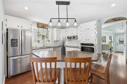 Welcome to this fully renovated, meticulously maintained home, where all major upgrades are complete, offering authentic move-in-ready living. The highly sought-after floor plan features a bright front living room that flows into a formal dining area, highlighted by vaulted ceilings. At the same time, the back of the home is designed for everyday living and entertaining, with a completely renovated kitchen featuring new stainless steel appliances, updated counters and backsplash, and seamless connections to the lower family room with custom built-ins. Throughout the home, you’ll find updated flooring, doors, casings, baseboards, paint, triple-glazed windows, roof, furnace, lighting, updated bathrooms, and a professionally developed basement. Upstairs offers three generously sized bedrooms, including a primary retreat with a spa-inspired ensuite. At the same time, the lower level provides an oversized recreation room with endless options for kids, a home gym, or a media space. Outside, the stunning backyard creates a private oasis perfect for relaxing or entertaining, and the renovated garage features epoxy flooring and a convenient side entrance door, making this a rare opportunity to own a thoughtfully upgraded home with no detail overlooked.