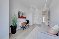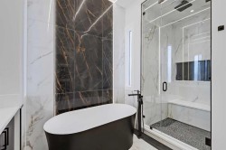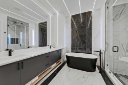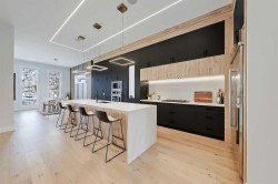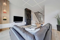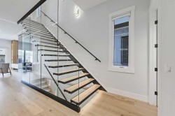 Welcome to life in Upper Mount Royal, one of Calgary’s most established and prestigious inner-city communities. Quiet, tree-lined streets, timeless character homes, and just steps from the energy of 17th Ave SW.From your front door walk to the cafés, restaurants, and boutiques that define the Red Mile. Morning coffee at Analog or Deville. Dinner at Model Milk, Lulu Bar, or Una. Pick up wine, flowers, or groceries without starting your car. Western Canada High School, Mount Royal School, and nearby green spaces are all within easy reach, while downtown is just minutes away by car, bike, or transit.This 4-bed, 3.5-bath luxury infill pairs elevated design with everyday livability. The brick exterior, artificial turf, and integrated landscape lighting deliver standout curb appeal with minimal maintenance. Inside, soaring ceilings and wide-plank hardwood floors set a refined tone. The foyer features a custom built-in bench with a wood slat feature wall that blends warmth with modern detail. The open-concept main floor is built for connection. Host in the bright dining area and gather around the oversized waterfall quartz island. The kitchen showcases full-height flat-panel cabinetry, premium appliances, under-cabinet lighting, and statement pendants. Black and natural wood finishes feel contemporary yet enduring.In the living room, a dramatic floor-to-ceiling black marble fireplace with gold veining creates a bold focal point. Large sliding glass doors open to the rear deck for seamless indoor-outdoor entertaining. The landscaped backyard offers privacy screens, underground sprinklers, and ambient lighting, creating a low-maintenance retreat in the heart of the city.A stylish powder room and functional mudroom with built-in storage complete the main level.Upstairs, a glass-enclosed staircase with open risers and LED lighting leads to a stunning primary suite. Arched windows flood the space with natural light, while the spa-inspired ensuite features heated floors, a freestanding tub, a STEAM SHOWER with rainfall head, and striking marble finishes that feel straight out of a boutique hotel.Two additional bedrooms, a modern 4-piece bath with heated floors, and a well-designed laundry room with sink and extra storage complete the upper level.The fully finished basement expands your living space with a large media room, built-in media unit, sleek wet bar with wine storage, and a dedicated exercise area with rubber flooring and mirrored wall. A fourth bedroom and full bath make this level ideal for guests, teens, or a private office.Smart home technology allows control of heating, cooling, lighting, security, and the fireplace from your phone. Built-in speakers, Hunter Douglas automated blinds, central A/C, security cameras, and an insulated double garage roughed-in for a gas heater complete the package.Evening walks beneath mature trees, weekend brunch on 17th, quick access to downtown offices...this is refined inner-city living with true community roots.