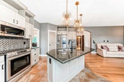 Beautiful custom home in Tuscany Estates! Incredible attention to detail in this stunning 6 bedroom home! This is an exceptional home for families seeking room to grow, with room to operate: high ceilings convey elegance, storage and layout for organization, and the custom wet bar and theater/media center invite entertaining. The greenspace backing transforms the backyard into a peaceful private retreat. This impeccably crafted 6-bedroom residence is nestled on a sought-after corner lot, backing directly onto tranquil greenspace featuring multiple sour cherry and apple trees.Your guests are greeted by an impressive two-story foyer with dramatic high ceilings, alongside real walnut doors and rich millwork that elevate every space. The heart of the home is a spacious open-concept kitchen, fully equipped with a center island, high-end appliances, and a generous pantry. Flow effortlessly into the family room, complete with a fireplace for cozy evenings. The main floor bedroom is ideal for guests or people who prefer less stairs! The basement defines luxury meets leisure featuring a built-in wet bar ideal for hosting, a media center wired for incredible theater experiences and a large gym area with floor to ceiling mirrors, while storage is thoughtfully layered throughout—from large closets to intelligently built-in cabinetry and hidden storage zones.Step outside to your private deck and patio, overlooking beautiful greenspace—your peaceful outdoor retreat. Don't miss this stunning and unique home in Tuscany Estates, just steps from schools, shopping, restaurants and more!