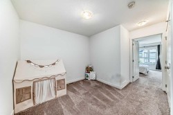 Enjoy the serene environment of your home facing a small green space. This unit has two huge master bedrooms, both with walk-in closets. There's also a bonus room on the upper level for your kids or your work. Perfect for first-time home buyers, downsizers, or investors—great rental potential! This well-maintained three-storey townhouse in the family-friendly community of Evanston offers 1,441 sq ft of developed living space. Enjoy the convenience of a large tandem double garage (38' x 10'4") and a 5’10” x 4’10” balcony. The entry level features a spacious foyer with direct access to the garage and a utility/storage area. On the main living area (2nd level), you'll love the contemporary open concept floor plan with luxury vinyl plank flooring, a neutral color scheme, and 9’ ceilings. The living room, with large windows, is perfect for relaxing with plenty of natural light. The dining area comfortably seats six, ideal for family and friends. The bright, modern kitchen boasts stainless steel appliances, tiled backsplash, quartz countertops, pantry closet, pendant lighting, and a breakfast bar. A door from the kitchen leads to a balcony with a gas line for BBQs. This level also includes a 2-piece powder room and a good-sized closet. The top level (3rd) features carpet throughout and an ideal dual primary layout with two bedrooms, two bathrooms, one ensuite and a bonus/flex room in between. The laundry closet is conveniently located in the Primary bedroom. This townhouse offers low condo fees, providing fantastic value. Evanston is a friendly community with many schools and programs, including sports, activities, an outdoor rink in winter, cleanup days, food trucks, and more. Located just off Symons Valley Parkway & Road and Beddington Blvd, with easy access to Deerfoot Trail and Stoney Trail. A quick 5-minute drive to Highway 2 leads to the majestic Rocky Mountains one-hour drive and just 10 minutes to the airport. You'll also be close to a wide range of amenities. You will love this gem of a home! This townhouse offers lots of natural light, extra storage, air conditioning, and low condo fees, providing fantastic value. Evanston is a friendly community with many schools and programs, including sports, activities, an outdoor rink in winter, cleanup days, food trucks, and more. Located just off Symons Valley Parkway & Road and Beddington Blvd, with easy access to Deerfoot Trail and Stoney Trail. A quick 5-minute drive to Highway 2 leads to the majestic Rocky Mountains (one-hour drive) and just 10 minutes to the airport. You'll also be close to a wide range of amenities. You will love this gem of a home!