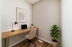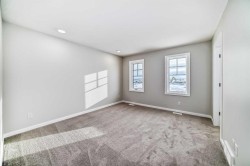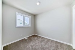 LET’S SKIP THE PART WHERE LISTINGS PRETEND EVERY HOME IS LIFE-CHANGING. This one is simply — and refreshingly — WELL THOUGHT-OUT. The main floor doesn’t force a moment of suspense or a “grand reveal.” It just opens into a BRIGHT, PRACTICAL LAYOUT that gets the fundamentals right. The POCKET OFFICE is tucked off to the side where it belongs, not jammed into a hallway. The living room and dining area fall into a natural rhythm. And the kitchen keeps things clean and functional with 42” UPPER CABINETS, QUARTZ COUNTERS, a CHIMNEY HOOD FAN, and a BUILT-IN MICROWAVE that isn’t fighting for visual attention.Light is a quiet strength here, lifted by the 9' CEILINGS and the way the windows pull brightness across the main floor. Warm wood-tone LVP carries the main level without any fuss. Out back, both the 10' X 10' REAR DECK and the 20' X 20' DETACHED GARAGE are already finished — no builder timelines, no guesswork. The FULL-WIDTH FRONT PORCH gives the home presence without being precious, and offers a practical spot to shake off the day before stepping inside.Upstairs, the BONUS ROOM does exactly what a bonus room should: fill the gap between bedrooms with a space that flexes easily without needing a title. The two secondary bedrooms sit together at the rear of the home, while the master takes the front — larger, brighter, and anchored by a walk-in closet with natural light. The ensuite keeps things straightforward with a glass-and-tile shower and quartz carried through from the main level.Practical upgrades are already handled: a high-efficiency furnace, gas lines for both stove and BBQ, and the full 200-amp electrical panel. The basement is legitimately future-ready with 9' foundation walls, a side entry, and rough-ins for a bathroom and sink — not the “maybe someday” setup buyers sometimes discover after the fact.STARLING LEANS QUIET AND NATURE-FORWARD — modern architecture, WETLANDS, PATHWAYS, and a slower pace than the busier northwest pockets. It suits a home like this: calm, functional, and built to make everyday life easier rather than louder.IMMEDIATE POSSESSION means you can move at your own speed. If you’ve been looking for a home that simply works — without the drama — this one is worth a walkthrough. • PLEASE NOTE: Photos are of a DIFFERENT Spec Home of the same model – fit and finish may differ. Interior selections and floorplans shown in photos. Kitchen appliances are included, and will be installed prior to possession.