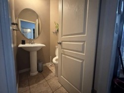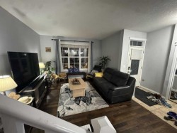 Showcasing true pride of ownership and polished to perfection, this beautifully maintained two-storey delivers close to 1,500 sq ft of stylish, functional living space with 3 bedrooms and 3 bathrooms.The main level features a bright, flowing layout enhanced by 9-foot ceilings with knockdown texture, warm oak hardwood floors, and a welcoming tiled entryway. The sleek kitchen is designed for both everyday living and entertaining, offering a central island, stainless steel appliances, and seamless sightlines into the living and dining areas.Upstairs, three spacious bedrooms provide comfortable retreats, complete with upgraded carpet and premium underlay. The generous primary suite includes a walk-in closet and a well-appointed ensuite featuring a relaxing soaker tub and separate shower. The basement feels open and inviting thanks to added windows and includes rough-in plumbing for a future bathroom along with central vacuum.Outdoors, enjoy quiet mornings on the sunlit front porch or host summer gatherings on the expansive rear deck. The fully fenced yard is finished with easy-care synthetic turf for minimal upkeep. An oversized heated garage ensures convenience year-round, with additional street parking available on this calm, family-friendly street just steps from the park and community centre with clubhouse, soccer fields, and tennis courts. Situated in the established neighbourhood of New Brighton, this exceptional home is truly ready for its next owners.
