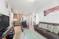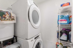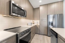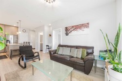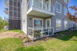 Welcome to this pristine 2 bedroom, 2 bathroom corner apartment that comes with titled underground parking. This unit is one of the largest plans in the complex and is very sought after! As you enter, you'll notice the meticulous care the current owner has invested to maintain its new condition. Situated on the main floor, it offers the quietude of having no adjacent neighbors. The kitchen boasts floor-to-ceiling cabinetry, providing ample storage and a large island with eating area. The stainless steel appliances are in like-new, undamaged condition and the stove was recently upgraded. Luxury Vinyl Plank flooring and ceramic tiles grace the bath and laundry areas. The living room is welcoming with with an upgraded balcony sliding screen door for bug free enjoyment. The laundry room offers additional storage, and the machines are well-maintained. The complex is an oasis featuring a garden area for those who enjoy growing their own vegetables. There is party room for events, a theater room in building 2000, and a full gym, spin and yoga studios, and a pet spa in building 1000. Ample visitor parking is available. The building is Air BnB friendly for those looking to use for short term rental. Ensure you don't miss out on this exquisite apartment – book your viewing today!