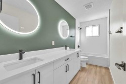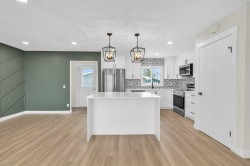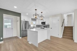 Newley renovated Home, Just shy of 2000 sqft of living space! For Investment or Live up and Rent down. Discover the perfect blend of modern comfort and family-friendly design in this beautifully renovated 4-level split, nestled in the heart of Penbrooke, Calgary. Welcomed by an open-concept main floor with an abundance of natural light pouring through newer windows throughout the home. The spacious modern & sleek kitchen is a chef’s delight, boasting brand new appliances, a main floor tucked-away laundry area a large and a bright spacious living room with a show-stopping electric fireplace feature wall and center island, plenty of cupboard space—making it ideal for both daily living and entertaining. Upstairs, you’ll find three generous bedrooms, including a primary bedroom with finished feature wall a full main bath for family or guests. A unique separate rear entrance and thoughtfully designed mudroom create privacy between the upper and lower levels, making this home perfect for multi-generational living or extended family. The third level has it's own kitchen with new appliances and a full bathroom with shower, while the lowest level features a second laundry set for ultimate flexibility and convenience. Downstairs, discover a beautifully finished lower level with a stunning kitchen—warm lower cabinetry paired with crisp white uppers. Two additional large bedrooms, huge walk-in closet and a stylish full bathroom complete the basement, offering a comfortable and private retreat for family, guests and or potential tenant. Step outside to a spacious, private backyard—perfect for summer barbecues, gatherings with friends, or quiet evenings under the stars. An oversized double garage provides ample room for vehicles, storage, or a workshop. Outside, the massive fully fenced backyard sits on an oversized rectangular lot, perfect for trailers, RV's or your next big project! Offering both space and privacy rarely found in the area. Enjoy the convenience of being just 10 minutes to downtown Calgary, with quick access to major transit routes and all the amenities you need close at hand. With every detail thoughtfully updated and designed for both style and function, this move-in ready home is a rare find in Penbrooke. Book your private tour today and experience everything this exceptional property has to offer!