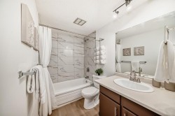 Freshly renovated 2-bedroom + versatile den condo in sought-after Varsity. From the moment you walk in, the space feels fresh, light, and airy. Updates include luxury vinyl plank flooring, new paint, updated tile and baseboards, modern lighting and faucets, a reglazed tub, and stainless steel kitchen appliances—creating a clean, contemporary, like-new feel throughout. The well-designed layout features a large primary bedroom that easily fits a king-size bed, a flexible den for a home office or extra storage, and a cozy stone-faced gas fireplace. Sliding patio doors open to a quiet, private balcony overlooking a peaceful courtyard with a peek-a-boo view of Market Mall.This adults-only (25+) building is well managed and includes an on-site manager. Practical perks: in-suite laundry, an assigned underground parking stall, visitor parking, and optional additional storage for $40/month. There’s also free street parking right beside the building on 50th Street NW.The location is hard to beat. Market Mall is steps away with groceries, pharmacy, Tim Hortons, restaurants, and retail. The adjoining professional centre offers medical, dental, and optical services, and the nearby University District continues to add trendy shops and amenities. Transit access is excellent, major routes are close for easy commuting, and outdoor lovers will appreciate being a short walk to Dale Hodges and Bowmont Park with river views, pathways, and playgrounds.A great opportunity to own a beautifully updated condo in one of Calgary’s most desirable communities - book your showing today! Possession timing is flexible.