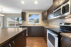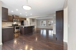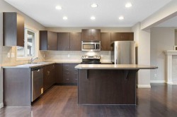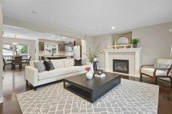 Wonderful Family Home near parks and schools on a quiet street. 3 bedroom 2.5 bathroom 2 story home. A covered front porch greets you as you approach the home. Open concept main floor with dark maple hardwood throughout. Stately fireplace in the Livingroom. Kitchen has a sit up island with room for 3-4 stools and lots of prep space for the aspiring chef. Main floor also has a half bath. Access to the large back deck and a good sized back yard. The second floor has 3 bedrooms. The primary has a nice 4 piece ensuite bath and room for a king bed. The other 2 bedrooms have lots of space for the growing family. The basement is unfinished and has potential for 2 more bedrooms, rec room space and is roughed in for a full bathroom. There is a parking pad that is perfect for the potential new double garage. Some photos have been virtually staged to demonstrate the potential use of space.