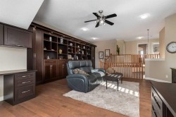 Welcome to this exceptional estate residence in the highly coveted community of Tuscany — where refined living meets timeless sophistication. Flooded with natural light, this beautifully designed home showcases an inviting open floor plan, rich maple hardwood flooring, and a spacious main-floor den ideal for a private office or library. The gourmet Chef’s kitchen is a true showpiece, featuring full-height cabinetry, premium stainless steel appliances, and an expansive island with a stylish eating bar—perfect for both everyday living and upscale entertaining. Upstairs, discover an impressive bonus room adorned with custom-built-ins, including two desks for a work-from-home space, along with three generous bedrooms. The luxurious primary suite is a serene retreat, complete with a large walk-in closet and a spa-inspired ensuite offering dual vanities, an oversized glass shower, and a deep soaker tub designed for ultimate relaxation. The fully finished lower level extends your living space with two additional bedrooms, a chic 3-piece bathroom, and a beautifully crafted recreation room—ideal for movie nights, fitness, or guests. Step outside to your private outdoor oasis, where mature landscaping frames a stunning backyard featuring an aggregate patio, low-maintenance Trex decking, and an amazing firepit area. It’s the perfect setting for elegant gatherings, summer BBQs, or peaceful evenings under the trees. Situated on a quiet, well-appointed street, this premier corner lot location offers the convenience of walking to schools, boutique shopping, Starbucks, scenic ravines, and miles of pathways—all while providing quick access to the LRT and major routes. This is more than a home—it's an elevated lifestyle, crafted for discerning families and those who love to entertain. OPEN HOUSE SUNDAY DEC. 14TH 1:00-4:00!!