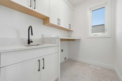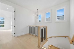 Gorgeous new 3 bedroom home built by Royal Design Homes on a quiet cul-de-sac in sought after Richmond, offering over 2000 sq ft of living space plus a self contained legal 2 bedroom basement suite. The bright & airy main level presents engineered hardwood floors, high ceilings & stylish light fixtures, showcasing the front dining area with beautiful feature wall & ample space to host family & friends. Create culinary masterpieces in the kitchen that’s tastefully finished with contrasting quartz counter tops, large island/eating bar, excellent appliance package & plenty of storage space, including a pantry & lovely built-in banquette. The living room is anchored by a floor to ceiling feature fireplace & built-ins. A cozy office space is tucked away just off the kitchen, perfect for a home office setup. Completing the main level is a convenient mudroom with bench, hooks & storage & a 2 piece powder room with wall paper accent & raised stone sink. Ascend the lighted staircase to the second level that hosts a loft/bonus room, 2 bedrooms, 4 piece bath & laundry room with sink & storage. The primary bedroom with vaulted ceiling boasts an outstanding walk-in closet & posh 5 piece ensuite with dual sinks, make-up vanity, relaxing freestanding soaker tub & rejuvenating steam shower. The fully contained legal basement suite features engineered hardwood floors, a large living/dining area with tons of built-in storage, kitchen with island/eating bar, quartz counter tops & stainless steel appliances. Two bedrooms, a 4 piece bath & dedicated laundry facilities complete the legal basement suite. Other notable features include roughed in air conditioning & 2 furnaces. Outside, enjoy the beautifully landscaped front garden & back yard with deck & access to a double detached garage. The location is incredibly convenient, close to vibrant Marda Loop, excellent schools, parks, public transit & easy access to 26th Avenue & Crowchild Trail.