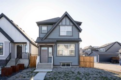"Open House - December 7th 300pm-430pm* Welcome to this beautifully finished 3-bedroom, 2.5-bath detached home in the vibrant, amenity-rich lake community of Mahogany. Offering 1,441 square feet above grade and upgraded to 9-foot basement clearance, this home blends stylish design with everyday functionality in one of Calgary’s most sought-after neighbourhoods.Step inside to discover high ceilings on the main and an open-concept floorplan featuring midnight blue kitchen cabinetry, sleek stone countertops throughout, and a premium Blanco Horizon undermount sink. The space is as practical as it is striking, with a front-load washer and dryer conveniently located in the upstairs laundry.The elegant primary suite includes a spacious walk-in closet and a private 3-piece ensuite, while two additional bedrooms provide space for family, guests, or a home office. From top to bottom, the home is thoughtfully finished with a refined, modern touch.The basement can be finished to give a spacious and airy feel with the high ceilings. There is ample room and an egress window for a generous sized bedroom and also the ability to utilitze the existing rough-in for a full bathroom development.Outside, enjoy a low-maintenance front yard, a fully fenced backyard for added privacy, and paved lane access to your oversized parking pad. You're just 1 km from the Mahogany Beach House—offering year-round recreation like swimming, fishing, tennis, paddleboarding, skating (including a 2.4 km skating path), hockey, volleyball, playgrounds, a gymnasium, splash park, basketball courts, and even firepits for cozy evenings.Whether you're an active family or looking for a peaceful retreat in a lake community, this home delivers on all fronts. Book your private tour today and experience the best of Mahogany living!