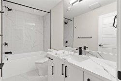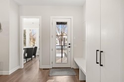A rare offering in West Hillhurst, this brand-new semi-detached home features a highly sought-after front attached double garage and backs directly onto tranquil greenspace. Spanning over 2,200 square feet, the home offers four bedrooms and three and a half bathrooms with a layout designed for both luxury and functionality. The main floor is bright and thoughtfully designed, highlighted by a front-facing south-exposed office with oversized windows that flood the space with natural light, ideal for working from home. The open living and dining areas are anchored by a chef-inspired kitchen with premium appliances, custom cabinetry, and an oversized island, while folding patio doors off the living room seamlessly open to a large rear deck overlooking the greenspace, creating an exceptional indoor-outdoor living experience. Upstairs, the south-exposed primary retreat is filled with natural light and features a spa-like ensuite, walk-in closet, and a private balcony, while two additional bedrooms, a full bathroom, upper-level laundry, and a versatile loft space complete the second level. The fully developed lower level adds even more living space with a generous recreation room, fourth bedroom, and full bath. Ideally located steps from parks, river pathways, schools, and the vibrant amenities of Kensington, with quick access to downtown, the University of Calgary, SAIT, and Foothills Hospital, this home delivers a rare combination of luxury, light-filled design, and an exceptional inner-city lifestyle. Call today to book your tour!