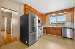 16.16x33.52 lot in Charleswood with a SW facing backyard and views of Downtown Calgary. Step into original hardwood floors, 3 upper bedrooms, 1 at the front, 1 at the side and 1 to the back with access just off the upper plans full 4 piece bath. The front living room carries the hardwood floors into the rear side dining area which is located adjacent to the rear kitchen. A full set of appliances, original upper and lower cabinets and steps to the back entry to access your SW facing yard or to the lower level. The lower level presents a 3 piece bath, the homes laundry and utility area, a recreation room as well as cold storage and a lower level hobby room. The home is partially fenced with a lower level deck, newer side fence, and shingles and an oversized garage. Presented on a re-development street close proximity to Nose Hill Park, but not with all the traffic noise as well as Brentwood School, St Luke School various big box and local amenities and of course U of C!