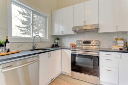 Welcome to this beautifully renovated home in the heart of desirable Acadia! This spacious 4-bedroom, 2 full bathroom property is move-in ready and loaded with upgrades. Step inside to discover a bright, vaulted main living area featuring brand-new vinyl plank flooring and fresh neutral paint. The open-concept layout flows into a completely redesigned kitchen with quartz countertops, subway tile backsplash, new cabinetry, and stainless steel SAMSUNG appliances.The dining area opens to a large backyard with a spacious deck—perfect for entertaining. A rear parking pad offers convenient off-street parking, and there's plenty of room to add a garage. The current owner is open to building one for the buyer, if desired.The home offers a smart layout that provides ample space for families and guests alike. Key updates include a new high-efficiency furnace (2025), front siding and asphalt shingle roof (2018), giving peace of mind for years to come.Located close to schools, parks, shopping, and transit—this turnkey property is a must-see in one of Calgary’s most established communities.