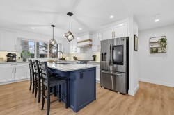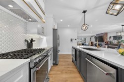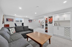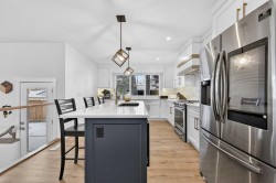 Tucked along a quiet street in the heart of Glendale, this beautifully renovated bungalow tells a story of thoughtful design, comfort, and effortless inner-city living, just minutes from Downtown, yet surrounded by one of Calgary’s most established and long-standing communities. From the moment you arrive, the modern farmhouse exterior, aggregate walkways and welcoming covered front porch set the tone. This is a home where neighbours stay, families grow, and down-sizers rediscover how easy life can be in a walkable, park-filled inner-city neighbourhood. Inside, the home unfolds into bright, open living spaces framed by large triple-pane windows and finished with durable, scratch- and waterproof LVT flooring perfect for busy family life and everyday comfort. The heart of the home is a stunning, custom-designed kitchen, anchored by a statement island, feature walls and thoughtfully built-in storage, creating a space that feels equally suited for morning coffee, family dinners and entertaining friends. The main level offers two generous bedrooms, including an oversized and private primary retreat. Here, a feature wall, patio door leading to the backyard and a spa-inspired five-piece ensuite with heated floors and a steam shower create a peaceful escape at the end of the day. Downstairs, the story continues with a fully developed lower level designed for connection and flexibility. A spacious recreation room with rough-ins for a home theatre, a stylish wet bar complete with wine cooler and wine rack, two additional bedrooms, a full bathroom and abundant storage make this level ideal for growing families, guests or multi-generational living. Every chapter of this renovation was carefully considered, with major upgrades already complete, including a new roof, furnace, hot water tank, electrical and landscaping, along with countless additional improvements throughout. And then there is the backyard, your own quiet retreat, located next to a park and within a playground zone. Mature trees, a large patio with gas BBQ hookup, and a double oversized detached garage create the perfect setting for summer evenings, family gatherings and relaxed weekends at home. In a community known for its long-term residents, easy access to Downtown and true inner-city convenience, this Glendale bungalow offers more than just a place to live; it offers a place to belong. Whether you are a young family putting down roots or looking to downsize without giving up space, style or location, this is a home where your next chapter can begin.