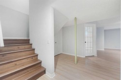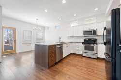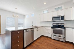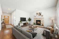 Beautifully updated and fully developed 2-storey home located on a quiet cul-de-sac in The Landing. This inviting property features a charming front veranda and a bright open-concept main floor with wide-plank laminate flooring throughout. Just off the entry is a front office with French doors, leading to a spacious family room with a stone-surround gas fireplace. The kitchen is well-appointed with granite countertops, a large seating bar, stainless steel appliances, white cabinetry with pot drawers, and excellent natural light. The dining area offers direct access to the large back deck, paved patio, and private fenced yard ideal for outdoor living. The detached insulated double garage is gas-fitted for a future heater. The upper level includes a window seat on the landing, a generous primary bedroom with a 4-piece ensuite and walk-in closet, two additional bedrooms, a 4-piece bathroom, and convenient upper-level laundry. The fully developed lower level provides a substantial recreation/games area, flex room, 3-piece bath, and ample storage. Additional features include air conditioning, a water softener, a reverse osmosis system, and updated shingles. This move-in-ready home offers exceptional value and is located in a fantastic family-friendly community.