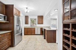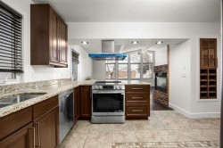 Beautifully renovated and designed for urban living, this stunning 1,790 sqft bungalow offers 3+1 bedrooms, 3 full baths, and a layout filled with natural light and thoughtful details — complete with air conditioning for year-round comfort and a newer roof (2021).You’re welcomed by an open foyer with vaulted ceilings that continue into the living room, den, and primary suite, bringing natural openness to these central areas. On the right, the East-facing Living room is bright and inviting, featuring expansive windows, gleaming hardwood flooring and a striking three-sided gas fireplace that warms the living, kitchen, and dining spaces at once. The well-appointed Kitchen includes granite countertops, stainless steel appliances, a brand-new KitchenAid range hood, ample cabinetry, and a built-in wine rack. A convenient side door offers direct access to the backyard, while the adjacent Dining Room provides an ideal setting for family meals or entertaining.To the left of the foyer, a bright and spacious Den leads into the private primary suite. This retreat features a generous walk-in closet with built-in organizers, and a luxurious 5-piece ensuite with double vanity and granite countertops. From the primary bedroom, step directly into your private backyard complete with a gazebo. The main level is finished with two additional well-sized bedrooms and a 4-piece bathroom.The fully finished basement offers brand-new carpet, a large recreation room, a fourth bedroom with a walk-in closet, a 3-piece bath, and a dedicated laundry room with sink — perfect for added living space, guests, or extended family.The home features a spacious backyard with a deck and patio area, complemented by a double detached garage with back-lane access, providing both utility and comfort. Located in the highly sought-after community of Brentwood, you’re within walking distance to parks and several highly rated schools. Residents also enjoy quick access to the University of Calgary, Brentwood C-Train Station, Nose Hill Park, Brentwood shopping centre and Market Mall, and a wide selection of shops and amenities — making this an unbeatable combination of comfort, convenience, and community.