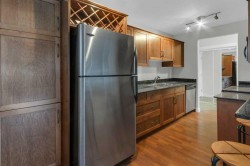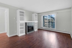 Freshly painted Oct 2025 with light neutral desiner colours! Short Term Rentals permitted with appropriate city licenses in sought after Sunnyside! Lovely updated 2-bedroom end unit in a concrete building. Stone counters, wood cabinets, cozy fireplace and large balcony with peaceful treed street front views. In suite laundry with storage PLUS a separate storage locker and covered off street parking. This quiet home has been owner occupied for 19 years and is in great condition. Amazing walkable location just 2 blocks to all your favorite Kensington shops and restaurants, 1 block to the Peace Bridge into downtown, 1 block to Bow River pathways, 2 blocks to Sunnyside LRT station, 8 blocks to SAIT, and tons of green space nearby. Pet friendly building. Condo fees include covered parking, heat, water & sewer. A great opportunity in an unbeatable location! This immaculate home is vacant and ready for you to move right in! Click on 3D for interactive 3D floorplans.
